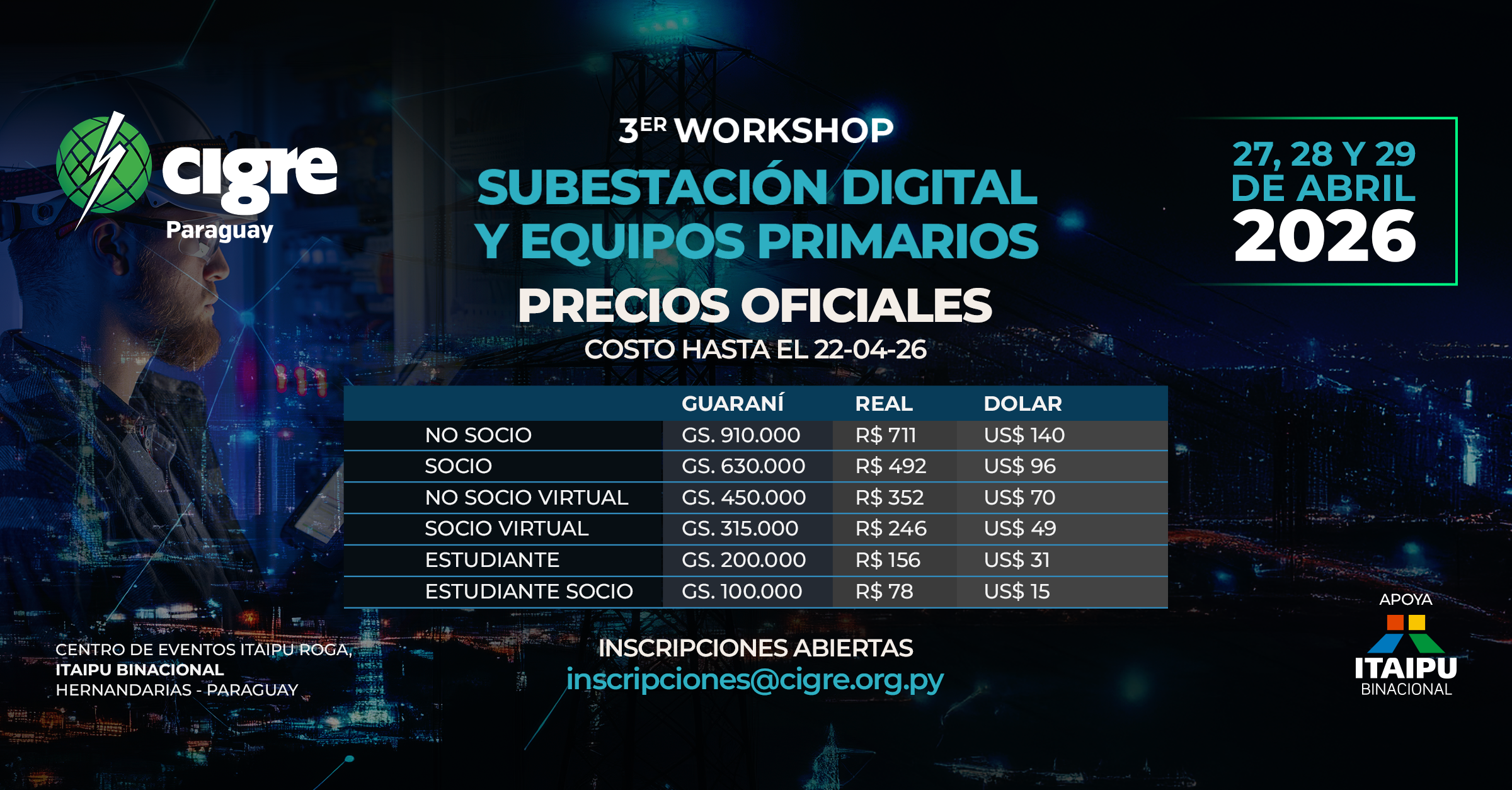 El 3er workshop se llevará a cabo desde el lunes 27 hasta el miercoles 29 de abril del 2026, de 08:00 a 16:00 horas, en el Centro de Eventos ITAIPU Roga de la ITAIPU Binacional, en la Ciudad de Hernandarias.